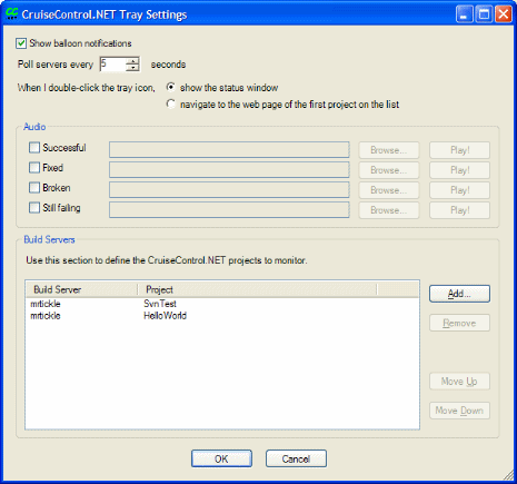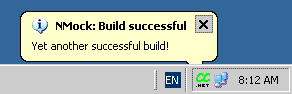 Ballon notifications use the standard Windows tray icon popup balloon whenever a build completes. Balloon notifications may be enabled/disabled.