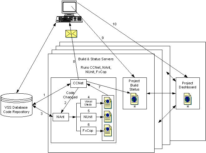 The following is an example of what steps the CruiseControl.NET server goes through when running an integration on a project built using NAnt and checked into a Visual Source Safe (VSS) Source Control Server.