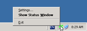- Display the main status window. Double-clicking the tray icon does this too.