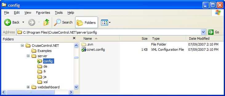 This is not the default location for ccnet's config file, so it needs to be told to look in a different place as well. If you are using CC.Net as a service, then the "ccnet.config" key can be added to the <appSettings> section in ccservice.exe.config to point to the new configuration file, as shown in the next code block. If you are running CC.Net in a console, using ccnet.exe.config, then you can pass the new path as a command-line parameter in the form "-config:config\ccnet.config". The path can be relative to the exe or an absolute path. More information about moving the configuration file is available on the Server Application Config File page.